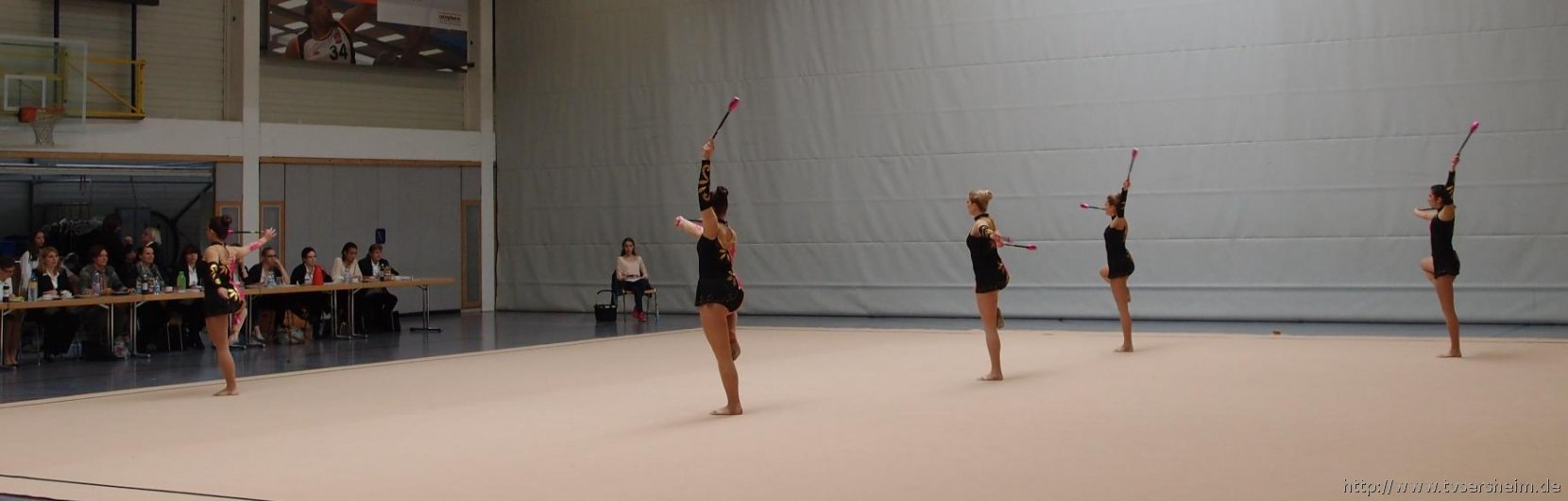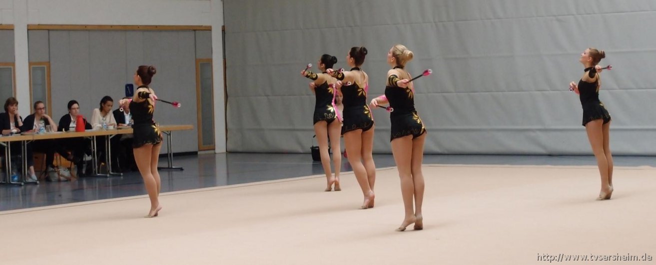 Das Team des TV Sersheim mit Julia Weh, Jasmin Geske, Meike Abel und Jenny Asprion wurde bei diesem Wettkampf zum ersten Mal von Sophia Tatiyosyan verstärkt, die erst seit diesem Jahr in der K-Gruppe mittrainiert, da Sabrina Götz verhindert war.