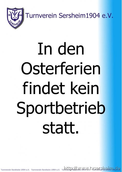 In den Osterferien findet kein Sportbetrieb statt.