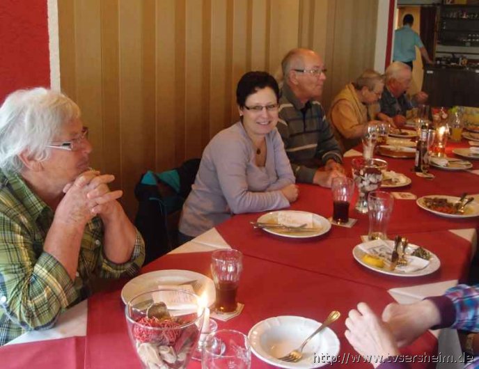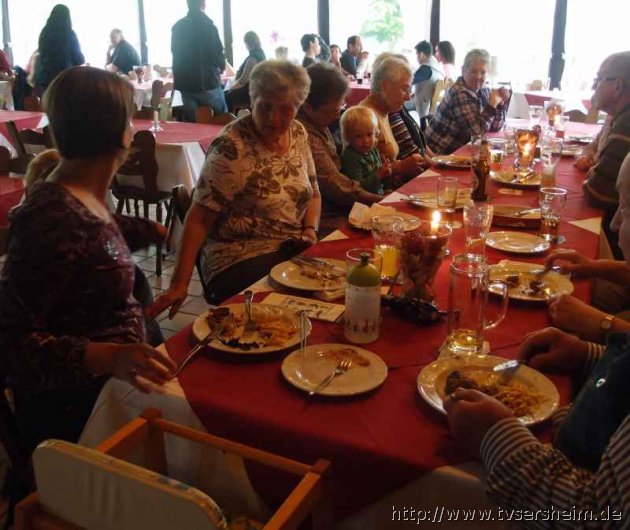 Kurz nach 12 Uhr, nachdem der Regen wieder stärker wurde, hatte die Wandergruppe das Ziel, die Vereinsgaststätte Metterblick, erreicht. Hier warteten bereits weitere TV Mitglieder auf die Wanderer. Man genoss das Essen und führte interessante Gespräche.