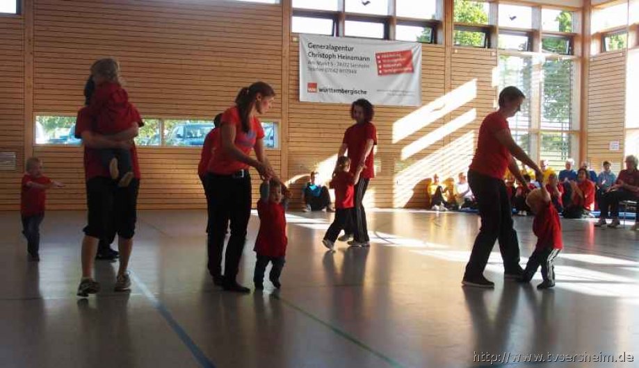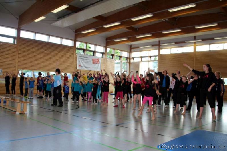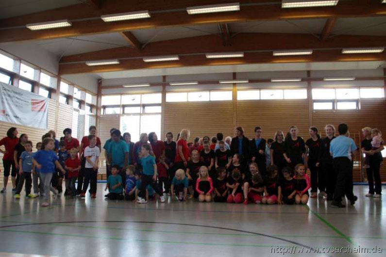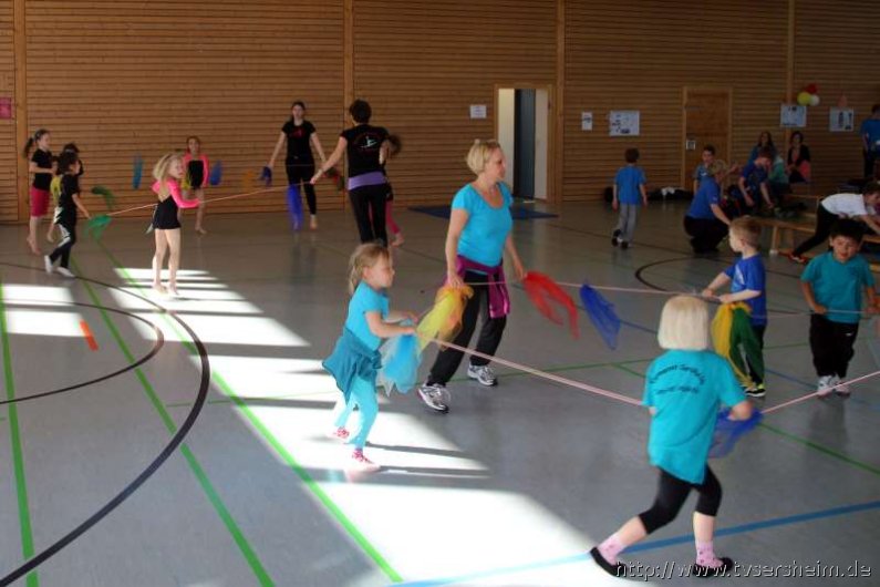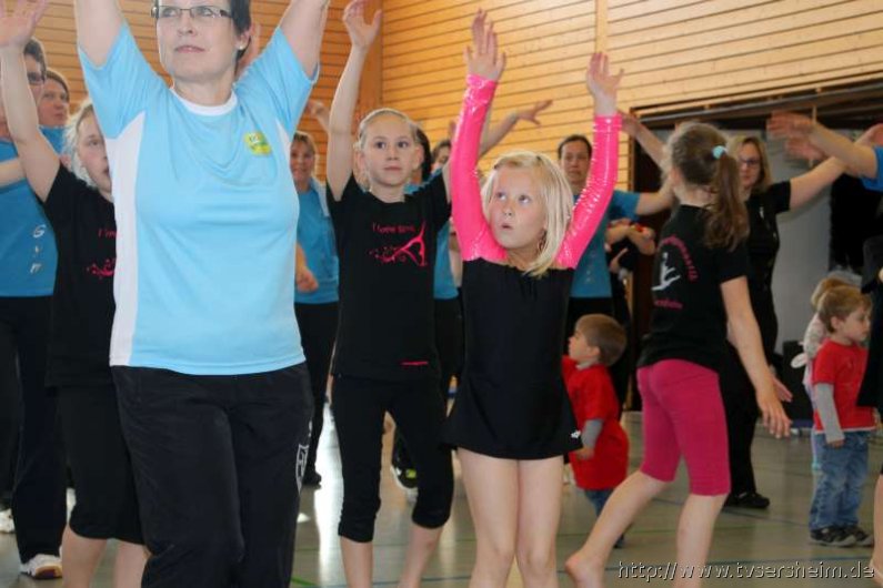 Angefangen von den Turnzwergen ab 1 Jahr, über den Kurs Bauch-Beine-Baby, Wettkampfgymnastik, Turn- und Tanzkids, Freizeitsport- und Gesundheitssportangebote bis hin zum Badminton. Abgerundet wurde das ganze mit einer gemeinsamen Abschlusschoreografie bei der alle Teilnehmer des Programms noch einmal auf der Fläche waren.
