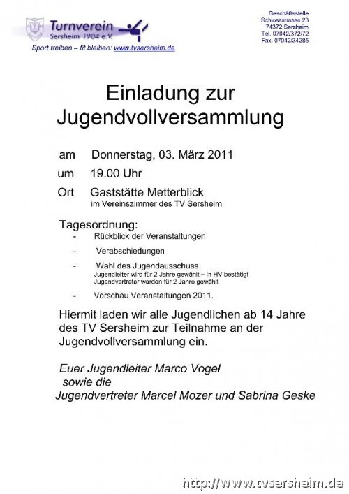 am Donnerstag, 03. März 2011 um 19.00 Uhr Ort Gaststätte Metterblick im Vereinszimmer des TV Sersheim