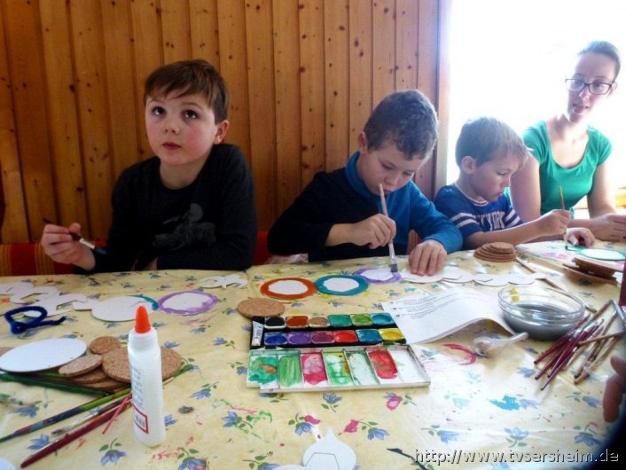 Sonntagvormitttag ging es nach dem Frühstück auch schon an das ausräumen der Zimmer. Wer damit fertig war, hat sich mit dem Spielen beschäftigt. Hierbei wurden zahlreiche Scoubidou-Bänder geknotet, sowie auch erneut kleine Katzen oder Schmetterlinge in Gesichter gemalt. Nachdem alle Zimmer ausgeräumt waren gab es noch eine Herausforderung für die Kids: Schokolade auspacken. Aber natürlich keine normale Packung Schokolade. Sondern eine Packung Schokolade, die zuvor mit Zeitung, Kreppband und Geschenkband umwickelt wurde. Zudem musste man erst mal eine sechs würfeln und sich mit Schal, Mütze und Handschuhen ausstatten, dann Messer und Gabel in die Hand nehmen und erst dann durfte man sich an das Auspacken der Schokolade machen. Doch das alles konnte die Kinder nicht davon abhalten, die Schokolade schließlich auszupacken und zu essen. Nachdem das geschafft war, ging es für die Kinder wieder nach draußen, wo es dann auch schon bald Mittagessen gab, das aus Stockbroten und Würstchen bestand. Somit neigte sich das Füllmi-Wochenende auch schon dem Ende zu und die ersten Eltern kamen, um ihre Kinder abzuholen.