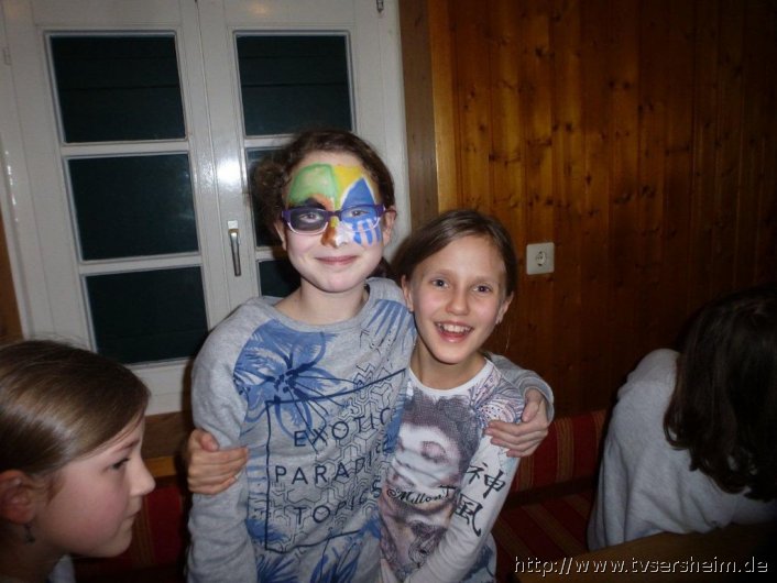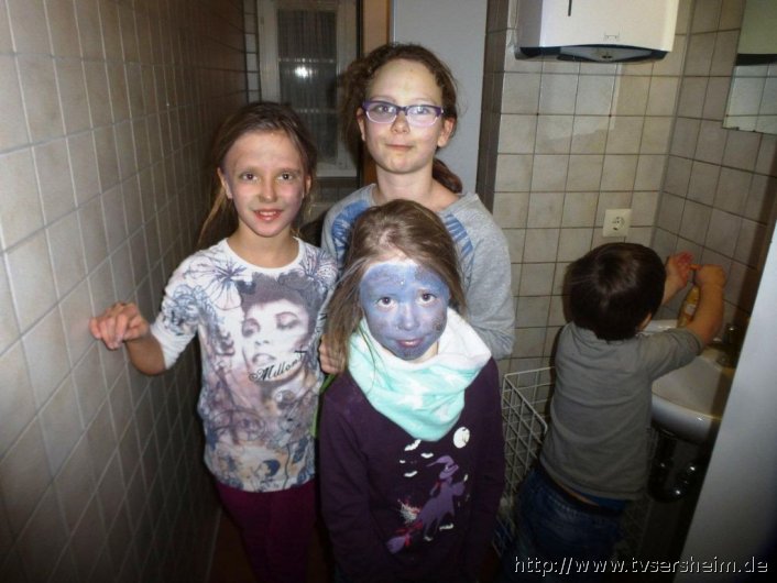 Nachdem wir am Freitagabend angekommen waren ging es erst mal daran, das Gepäck auf den Zimmern zu verstauen und sich zurechtzufinden, bis es dann auch schon Abendessen gab. Nach den leckeren Häppchen ging es aber noch längst nicht ins Bett. So tobten sich die Kinder mit Versteckspielchen aus oder hatten ihre Ruhe beim gegenseitigen Schminken. Hierbei entstanden einige Kunstwerke von Ballerina bis Eisprinzessin, aber auch die Jungs hatten ihren Spaß als sie sich kleine Spinnen auf ihre Handflächen zeichneten, um andere damit zu erschrecken. So wurden die Kleinen dann aber auch Müde und zur Geisterstunde kehrte dann auch Ruhe ein.