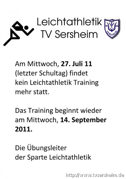 Am Mittwoch, 27. Juli 11 (letzter Schultag) findet kein Leichtathletik Training mehr statt.