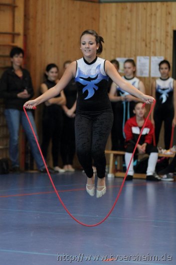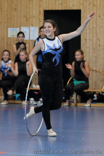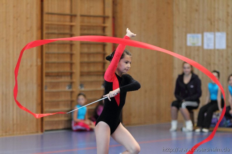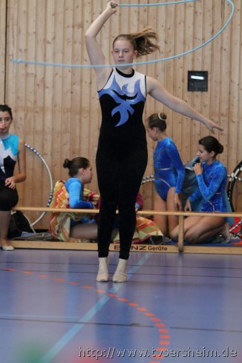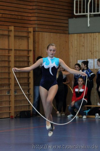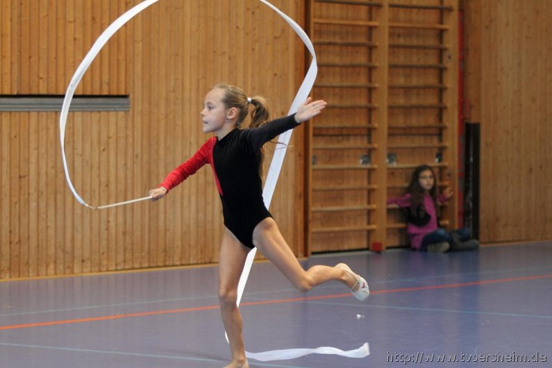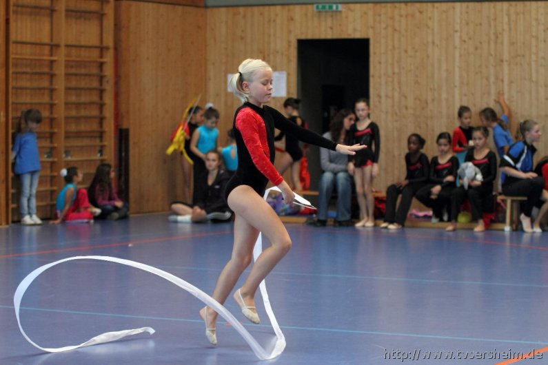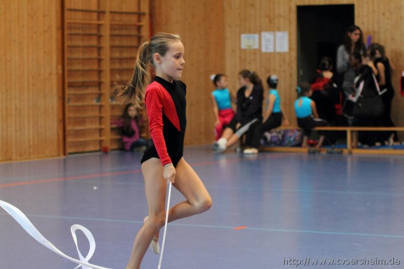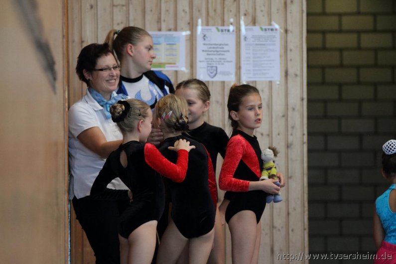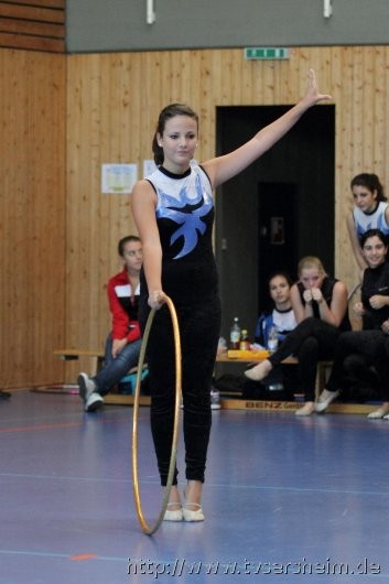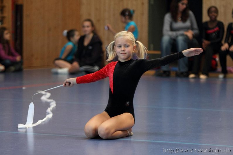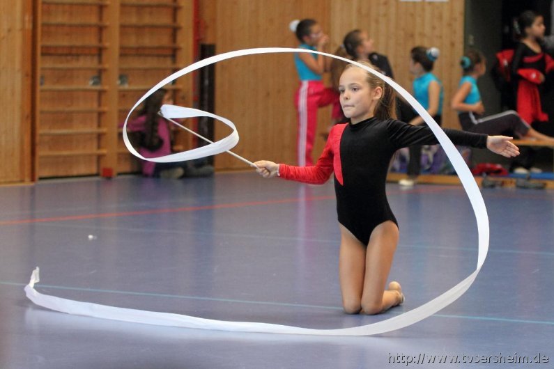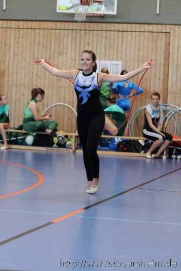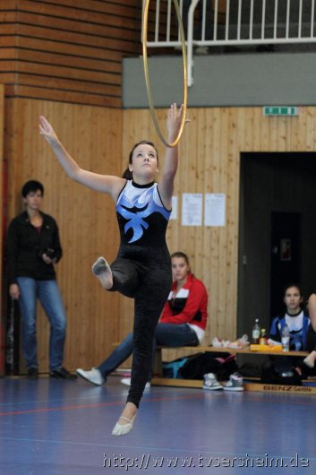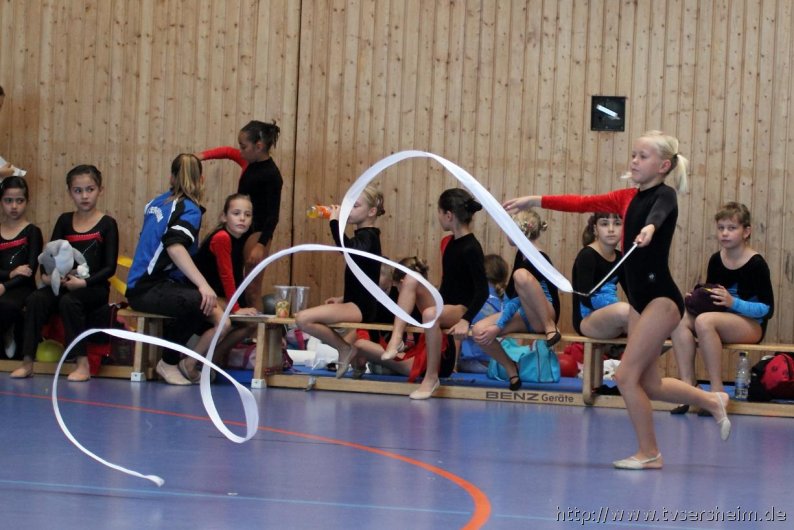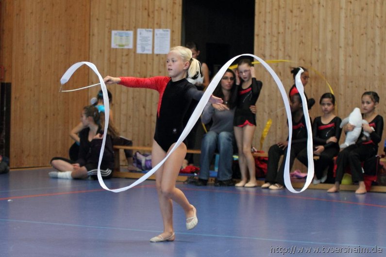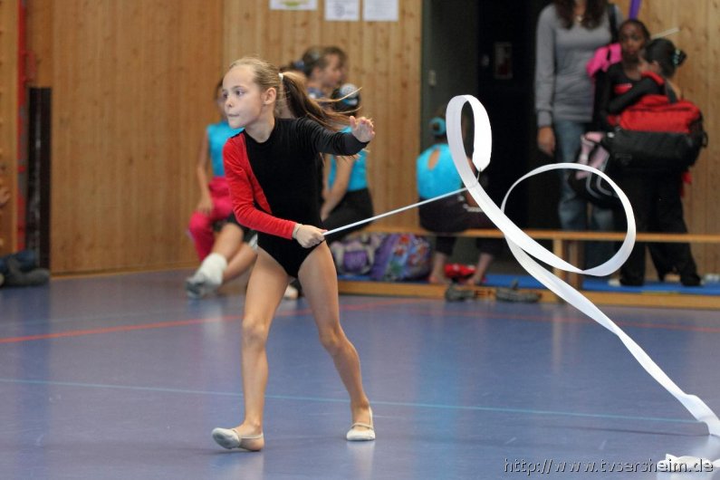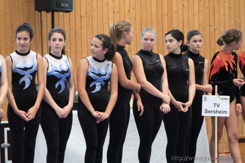 Am Samstag, 15. Oktober 2011 fand in der Sport- und Kulturhalle in Sersheim das Württembergische Landesfinale der Mannschaften aus dem Fachgebiet Wettkampfgymnastik des Schwäbischen Turnerbundes statt. Die Mannschaften mussten sich über ihre Turngaue für diese Wettkämpfe qualifizieren. Diese kamen vom TV Altenstadt, TSV Berkheim, TSV Ebingen, SV Esslingen, TV Hochdorf, TG Geislingen, TV Großheppach, TSV Schmiden, MTV Stuttgart, TV Truchtelfingen, TSV Weinsberg und vom Gastgeber dem TV Sersheim. Am Vormittag turnten im Hallenteil II zuerst die Frauen und Jugend A Übungen der schwierigen Leistungsstufe 9 mit den Handgeräten Seil, Reifen und Ball auf Musik. Im Hallenteil III turnte zuerst die B-Jugend Übungen der Leistungsstufe 8 und im Anschluss die C-Jugend die Übungen mit dem Seil, Reifen und Ball. Am Ende siegte das Frauenteam. Die B-Jugend wurde Vizelandessieger, die C-Jugend belegte einen guten dritten Platz und die A-Jugend wurde vierte. Weiter ging es am Nachmittag. Im Hallenteil II turnte die D-Jugend einen Dreikampf mit den Handgeräten Ball, Reifen und Seil der Leistungsstufe P 6. Im Hallenteil III eröffnete die E9 den Wettkampf mit dem Ball, Band und ohne Handgerät 1. Zum Abschluss turnte die Jugend E8 einen Zweikampf hier die Übung ohne Handgerät 1 und Seil P 4. Die Mannschaft E8 wurde Landessieger, das Team der E9 belegte einen hervorragenden dritten Platz und das D-Jugendteam den 6. Platz. Vor der Siegerehrung gab es eine Vorführung der Sparte Turnzwerge, die mit der Bimmelbahn in die Halle kamen und unter dem Motto Sommer zeigten wie viel Spaß Sie beim Turnen haben.