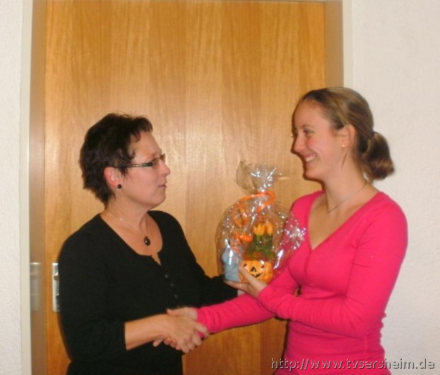 Vorstand Karin Geske gratulierte Heike Bachert recht herzlich und überreichte ihr als Dankeschön ein kleines Präsent.