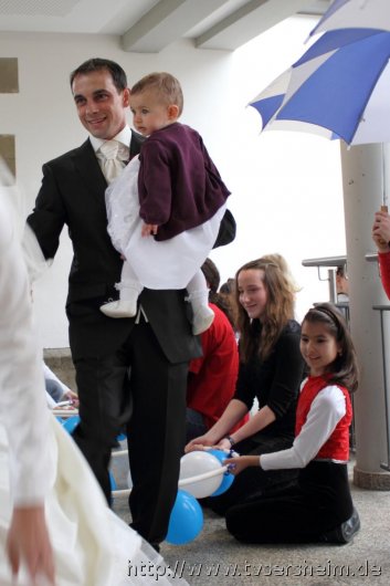 Am Samstag, den 14.April feierten Katrin und Jörg Maier ihre kirchliche Trauung. Nachdem der Gottesdienst für das Paar und deren Tochter Luisa, die zeitgleich getauft wurde, beendet war, wurden sie mit einem Spalier vor der Kirche empfangen.