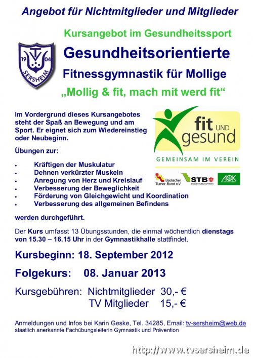 Anmeldungen und Infos bei Karin Geske, Tel. 34285, Email: tv-sersheim@web.de