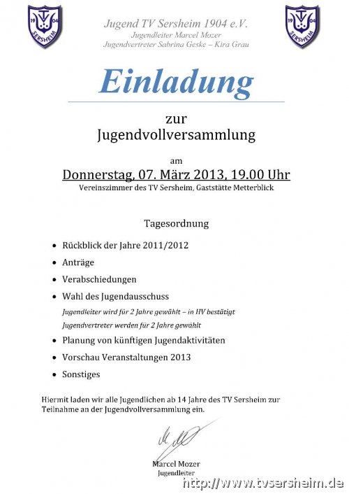 Die Jugend des TV Sersheim lädt zur Jugendvollversammlung ein.