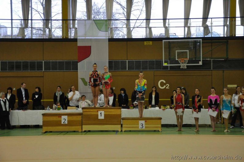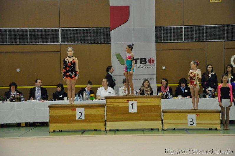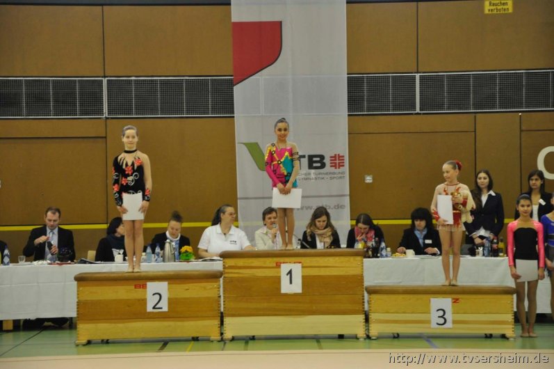 Doppelsieg mit 49,150 Punkte und einem recht großen Vorsprung teilten sich Kathrin Sigle TSV Großheppach und Sabina Cerimic MTV Stuttgart das Siegertreppchen. Platz 3 ging an Celine Lechaux vom TSV Schmiden mit 46,550 Punkte. 4. Sophia Tatiyosyan TV Sersheim 44,250 Punkte, alle vier konnten sich für den Deutschland Cap am Montag, 20. Mai 2013 beim Deutschen Turnfest qualifizieren.