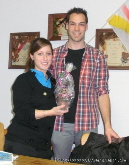 Sabrina Geske erhielt einen Gutschein vom Turnverein sowie ein Blumenpräsent vom Jugendleiter. Sie war Helferin im Kinderkurs von 2004 bis 2006 und in der Ganztagesbetreuung von 2006 bis 2009 sowie von 2006 bis 2013 als Jugendvertreterin für den TV tätig. Ihr Amt als ÜL Schnürles übt sie weierhin aus. Des Weiteren gab es ein Krankengeschenk für den verletzten Gerätturner und ehemaligen Jugendleiter, Marco Vogel von den Vorständen Karin Geske und Ralf Gänzle