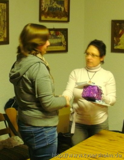 die von 2007 bis Dezember 2012 als Helferin der Turnwerkstatt tätig war mit einem Präsent.