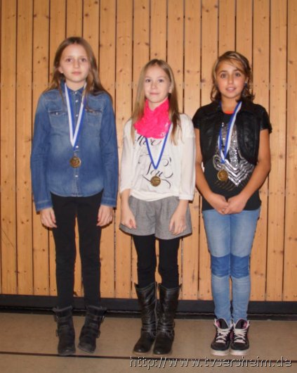 Jasmin Tenzer, Katharina Roth und Demet Köle, welche für ihre Erfolge auf Landesebene geehrte wurden und hierfür eine Medaille und Urkunde erhielten.