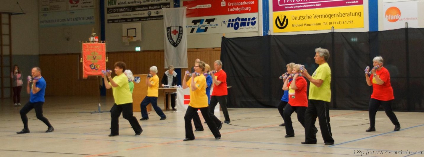 Zum Abschluss des bunten Unterhaltungsprogramms präsentierte Horst Doufrain mit einer gemischten Turnergruppe Hantelgymnastik der Senioren und die ShowTanzgruppe des TV Möglingen begeisteret die Gruppe mit Body Talk.