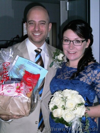 Ralf Gänzle überreichte im Namen des Turnverein Sersheim ein kleines Präsent und wünschte dem jungen Paar alles Gute für die Zukunft.