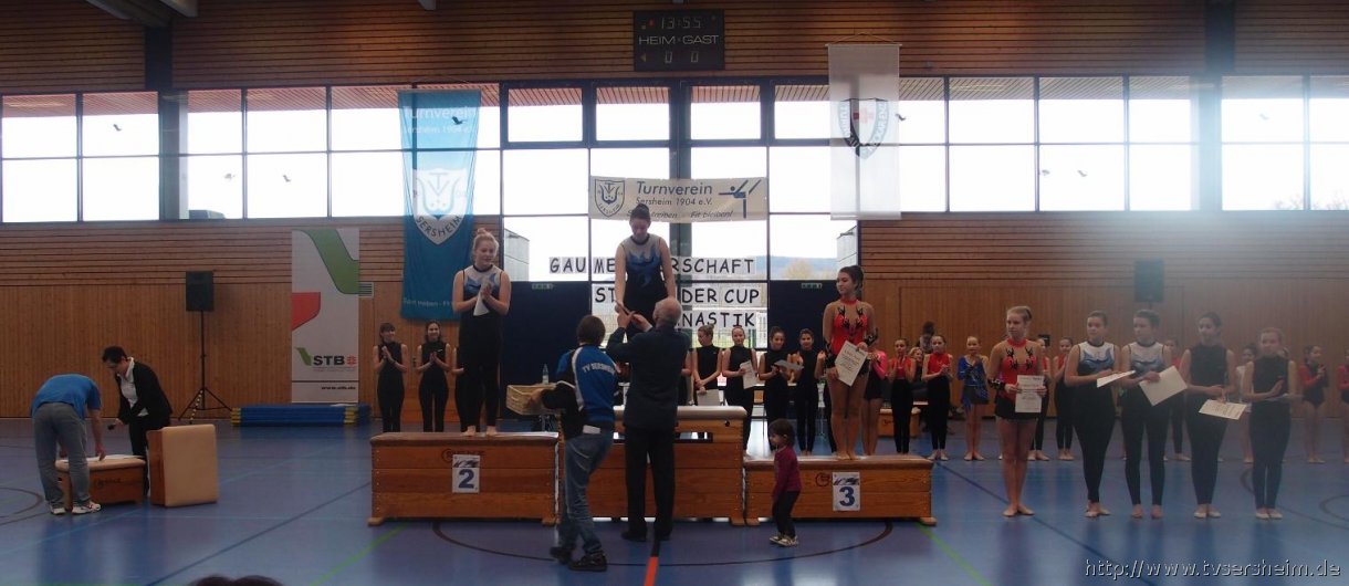 Wettkampf 22812 weibliche Jugend C Gaumeisterin Sophie Tutzschke MTV Ludwigsburg 18,20 Punkte Platz 2 Felicia Günseber 16,90 Punkte, 3. Sabrina Canadas 16,65 Punkte, 5. Zenepe Redzepi 16,20 Punkte, 9. Anna-Lina Wirth 14,65 Punkte, 10. Jessica Lutsch 13,10 Punkte, 11. Jana Achilles 11,35 Punkte, 13. Demet Köle 10,55 Punkte alle TV Sersheim