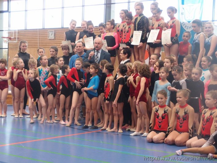 Vor der Siegerehrung gab es für TurngauPräsident Gunter Bretschneider ein kleines Dankeschön vom TV Sersheim für die gute Zusammenarbeit und die Unterstützung in den vergangenen Jahren, da er im Februar sein Amt im Turngau ab gibt.
