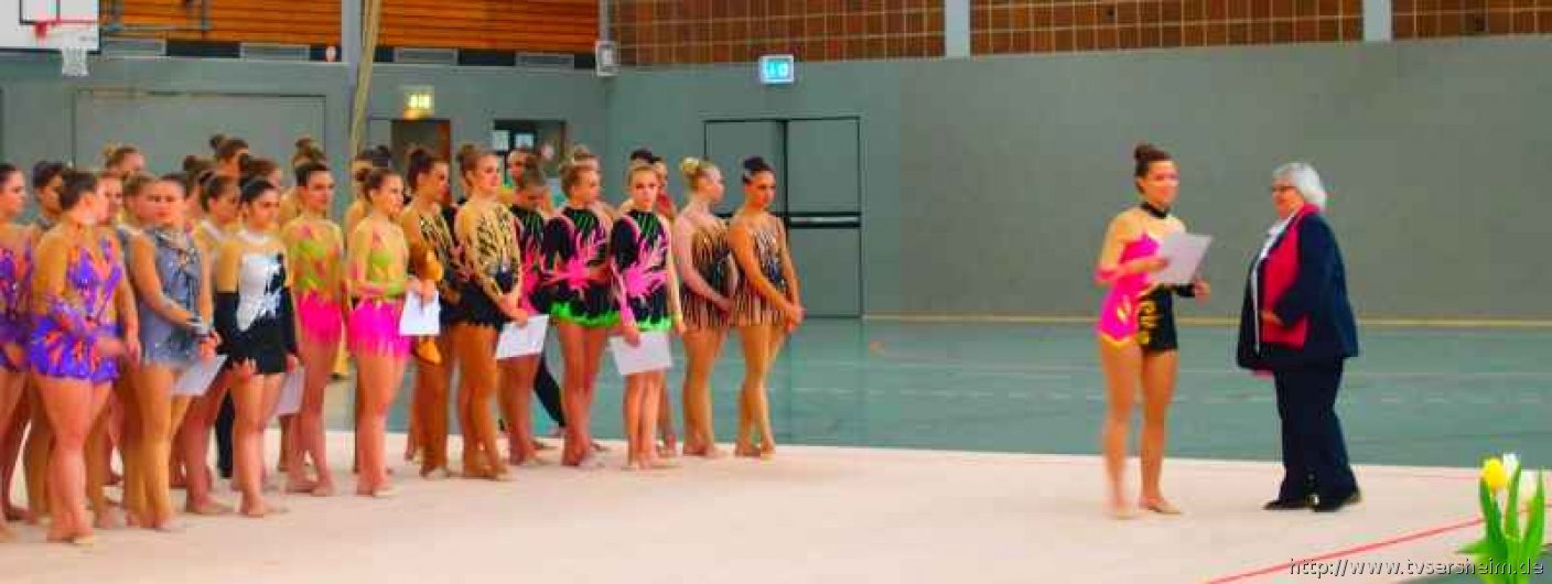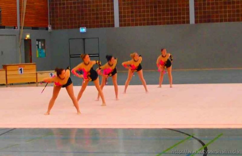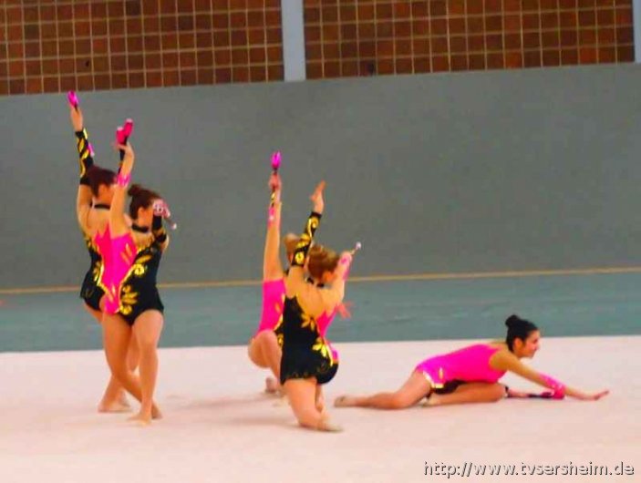 Dieser Gruppengymnastik liegen die Pflichtelemente der K8 zu Grunde; die Kür muss 1:30 – 2:30 Minuten lang sein. Es wird eine Übung gefordert, die in zwei Durchgängen geturnt wird. Die Pflichtelemente müssen zeitgleich von der ganzen Gruppe gezeigt werden. Die Teilnehmerzahl der Gruppe kann zwischen 3 und 6 Gymnastinnen variieren. Der Gruppe darf nur eine RSG-Gymnastin angehören. Um 16 Uhr startete das Einturnen im Hallensportzentrum in Lahr. Um 17 Uhr die Wettkämpfe. Zur Auswahl standen die Handgeräte Keulen und Reifen. Bewertet wurden die Übungen von Bundes- und Landeskampfrichterinnen Das Team des TV Sersheim mit Julia Weh, Jasmin Geske, Meike Abel, Jenny Asprion und Sophia Tatiyosyan hatte sich zum Ziel gesetzt eine Platzierung unter den besten sechs Teams zu belegen. Mit dem ersten Durchgang waren die fünf Gymnastinnen zufrieden. Im zweiten Durchgang startete das Sersheimer Team als letzte Gruppe und hatte eine sehr lange Wartezeit. Es gab es leider einige Handgerätverluste, so daß man am Ende den vierten Platz mit 27,70 Punkten belegte.