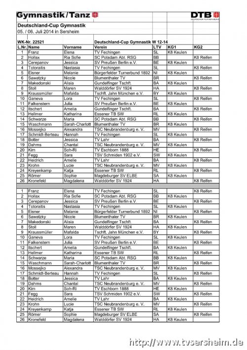 K8 Startreihenfolge Deutschland-Cup Gymnastik