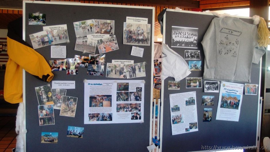 Der Raum war von Karin Geske und weiteren Ausschuss Mitgliedern der Ski-Abteilung mit Gegenständen aus dem Ski-Sport geschmückt worden. An mehreren Stellwänden waren Bilder von Veranstaltungen der Ski-Abteilung zu sehen. Der Eine oder Andere konnte sich darauf erkennen. Auf einem Bildschirm wurden Videos und Bilder aus der langen Vergangenheit der Ski-Abteilung gezeigt und es war interessant, zu sehen, wie sich die Teilnehmer, vor allem die damaligen Kinder, verändert haben. Man wurde daran erinnert, dass es ein sehr reges Vereinsleben gegeben hat.