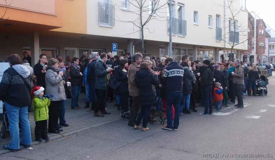 weiter gab und währenddessen die Weihnachtsgeschenke verteilte. Karin G. verlas Weihnachtsgedichte, anschließende wurden gemeinsam Weihnachtslieder gesungen. Zum Mittagessen gab es gegrillte Rote Würste, Oberländer und Salat, dazu Glühwein oder Punsch. Wer mochte konnte noch Kleingebäck der obigen Vereine genießen. Ab 12.30 Uhr spielte der Musikverein unter Leitung von Peter Kopp und Stefanie Foisel vor dem Pflegeheim Weihnachtslieder und lud alle Gäste ein auch mit zu singen.