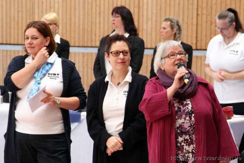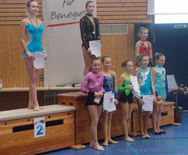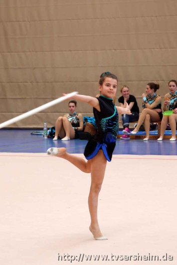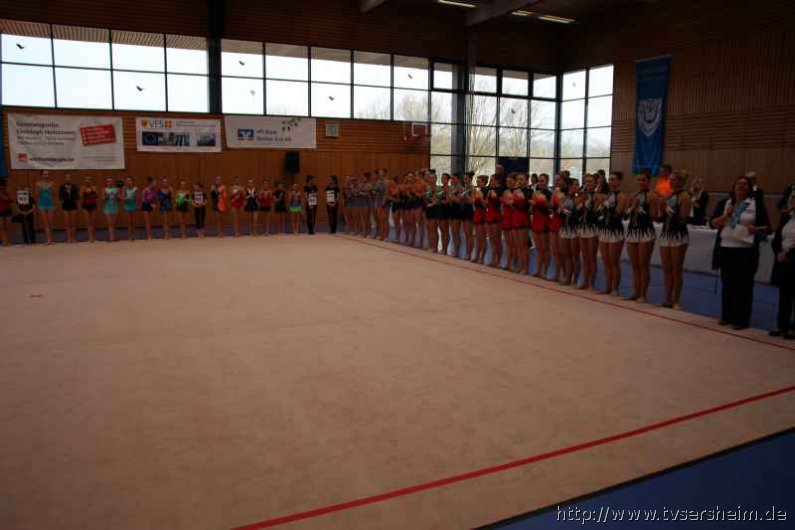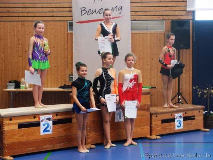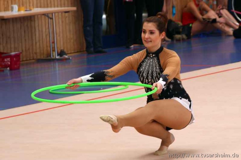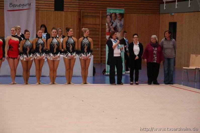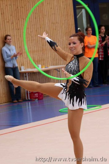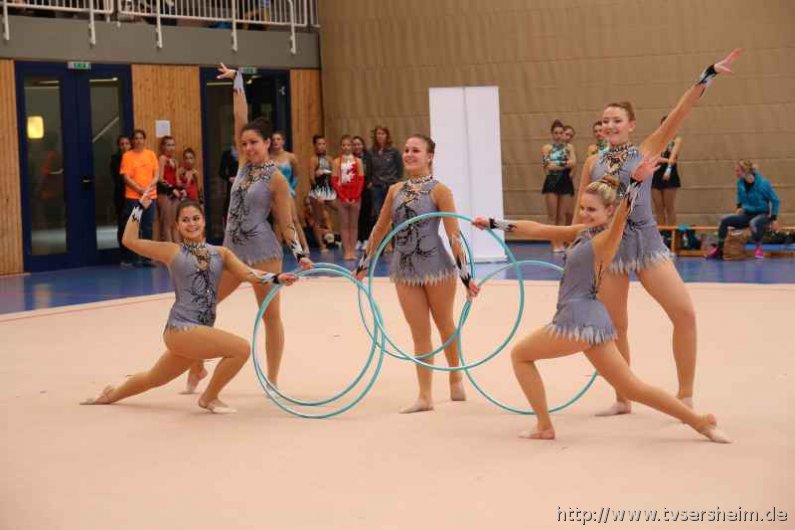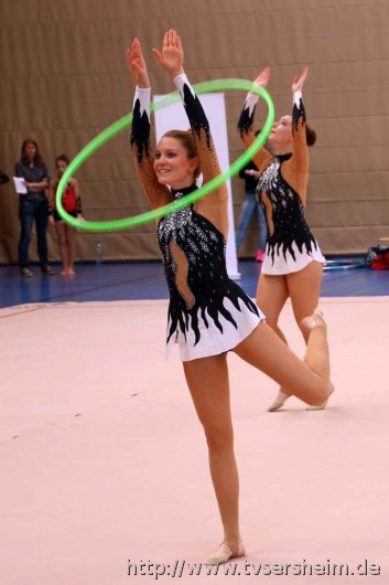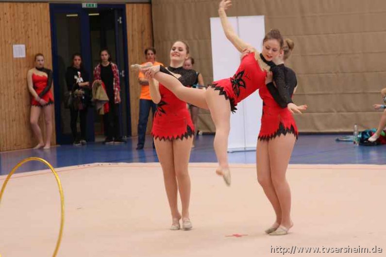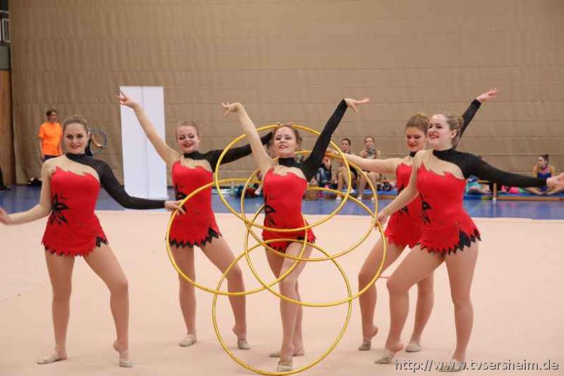 Bei der K Gruppe besteht ein Team aus 3 bis 6 Gymnastinnen ab 12 Jahre. Es kann eine Ersatzgymnastin gemeldet und variabel eingesetzt werden. Dieser Gruppengymnastik liegen die neuen Pflichtelemente der K8 zu Grunde. Alle Gruppen turnten das Handgerät Reifen. Die geforderte Übung, muss in zwei Durchgängen geturnt wird. Des Weiteren kommt die Harmonie, Synchronität und Präsentation dazu. Die Ergebnisse werden addiert und ergeben am Ende die Platzierung. Leider hatte das sonst so souveräne Sersheimer Team in beiden Durchgängen einige Handgerätverluste, aber auch den anderen Gruppen war die Spannung anzumerken so, dass es am Ende auf jedes Zehntel ankam. Am besten präsentierten sich hier die Truchtelfinger Kalinkas und belegten am Ende mit 29,265 Punkten Platz 1. Platz 2 ging an den TV Truchtelfingen mit 27,931 Punkten, dicht gefolgt vom TV Sersheim (Julia Weh, Jasmin Geske, Sabrina Götz, Sabrina Abel, Meike Asprion) mit 27,632 Punkte, 4. TSV Schmiden, 22,698 Punkte, 5. Platz Neueinsteiger TSV Großheppach 17,265 Punkte. Die zwei besten Gruppen qualifizieren sich für den Deutschland Cup Gymnastik K-Gruppe am 13./14. Juni in Neubrandenburg.