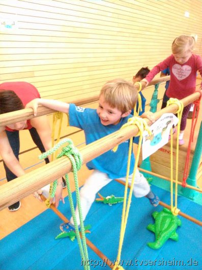 Am Samstag, dem 25. April 2015 machten sich insgesamt 17 Kinder vom TV Sersheim - gemeinsam mit ihren Eltern –zum Abenteuertag in Eglosheim auf. Nach anfänglichen Startproblemen beim Veranstalter aufgrund der unerwartet hohen Teilnehmeranzahl, war der Abenteuertag eine willkommene Abwechslung für die Kinder. Unter dem Motto „Dschungel“ mussten sie unter anderem durch ein Affenhaus klettern, an Lianen schwingen und einen Fluss mit Krokodilen überqueren. Nachdem die unterschiedlichen Stationen des Dschungels gemeistert wurden, konnte man sich noch mit Würstchen und Waffeln stärken. Der Spaß stand an dem Tag im Vordergrund und alle Kinder erhielten bei der Siegerehrung noch eine Urkunde.