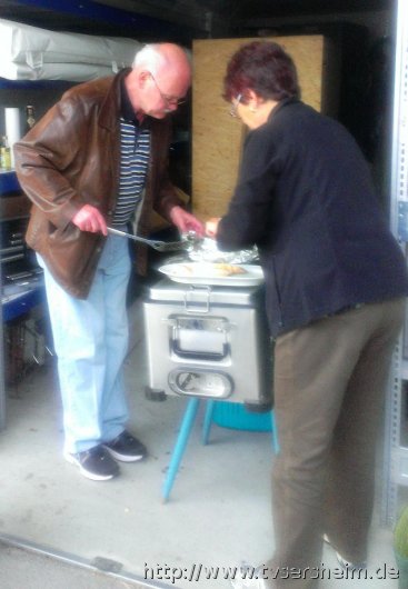 Abteilungsleiter Reiner Stein hatte für alle anlässlich seines 70. Geburtstags frischen Lachs gegrillt und Irmgard Müller lud anlässlich ihres 80. Geburtstags zu einem Gläschen Sekt ein.