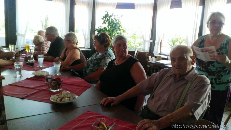 Am Donnerstag, 17. Juli 2015 fand beim TV Sersheim das erste Treffen der Ehrenmitglieder statt. Organisiert wurde das ganze von Ältestenrats Vorsitzender Gerlinde Götz und Ex Vorstand Karin Geske. Los ging es bei Kaffee und selbst-gebackenen Kuchen. Es wurden angeregte Unterhaltungen und Gespräche geführt. Gerda Rau lass ein Gedicht vom Ausflug zu den Sportfreunden in Taufkirchen vor. So mancher erinnerte sich noch daran. Zwischenzeitlich war auch Vorstand Gerd Kurfiß dazu gestoßen. Bei einem Viertele oder Glas Bier sangen alle noch gemeinsam Lieder. Man verabschiedete sich und war sich einig ein unterhaltsamer Nachmittag, der auf jeden Fall wieder statt finden muss.