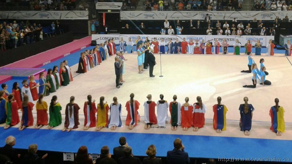 Am Dienstag 8. September machten sich 13 Sersheimer Gymnastinnen mit Übungsleiterin Karin Geske, Betreuerin Silvia Roth und Eltern auf den Weg nach Stuttgart um anlässlich der Weltmeisterschaft der Rhythmischen Sportgymnastik in der Porsche Arena bei der Eröffnungsveranstaltung teilzunehmen.