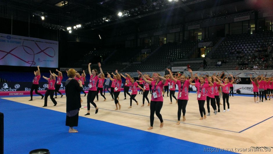 Am Donnerstag, 10. September 2015 machten sich 8 Gymnastinnen des TV Sersheim gemeinsam mit Übungsleiterin Karin Geske auf den Weg nach Stuttgart zum Camp anlässlich der WM.