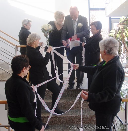 Gesundheitsorientierte Fitnessgymnastik - Mach mit werde fit. Das Brautpaar musste sich davor den Weg frei schneiden.