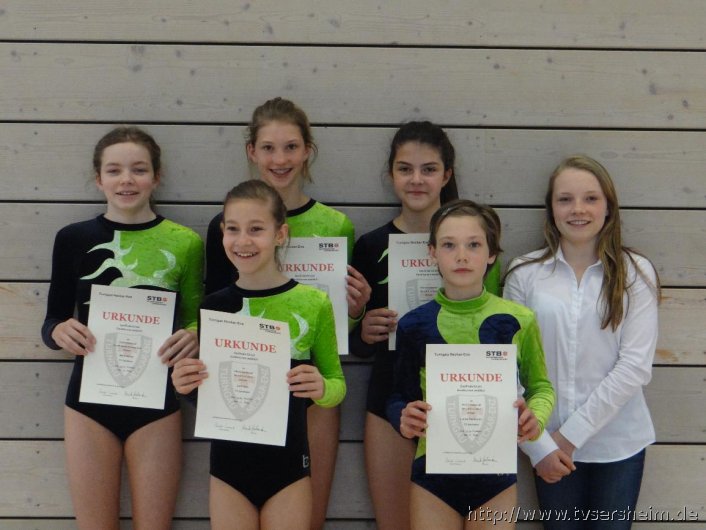 In Den Pflichtübungen starteten für den TV Sersheim in der D-Jugend: Letizia Tamborini (D11), in der C-Jugend: Leni Hass (C12) und Katarina Varada (C12). Anna Lindauer startete das erste Mal bei diesem Wettkampf in der Jugend C 13. Merit Neibig ging in der offenen Altersklasse als jüngste Turnerin im Teilnehmerfeld dieses Wettkampfes an den Start. Alle turnten durchweg schöne und sichere Übungen und so konnten die Mädchen stolz auf Ihre Leistungen sein. Bei der Siegerehrung musste man einige Turnerinnen der Talentschulen des MTV Ludwigsburg, TSV Asperg und des KSV Hoheneck an sich vorbeiziehen lassen. In der Jugend D11 belegte Letizia Tamborrini in diesem Wettkampf, wie bereits im letzten Jahr einen hervorragenden 6. Platz und qualifizierte sich somit für das Regionalfinale am 7. Mai in Neustetten.