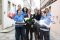 mit Blumen vor dem Vaihinger Rathaus.