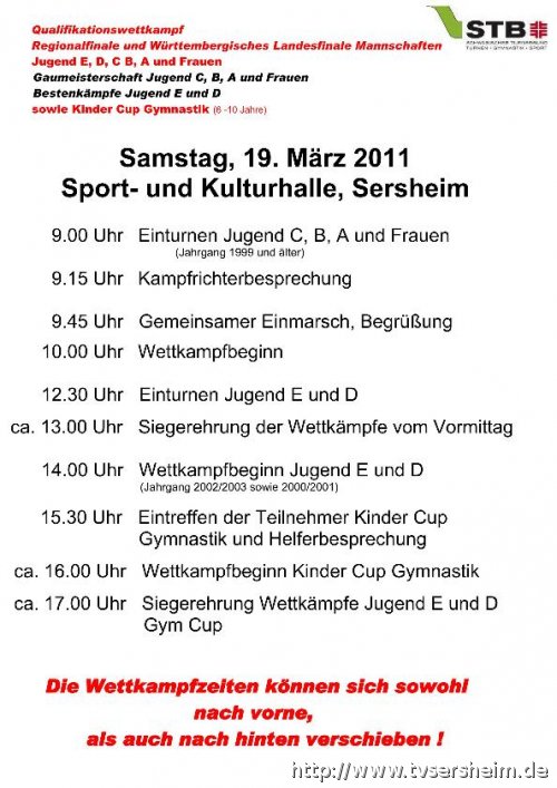 Qualifikationswettkampf Regionalfinale und Württembergisches Landesfinale Mannschaften Jugend E, D, C B, A und Frauen (Jahrgang 2003 und älter)