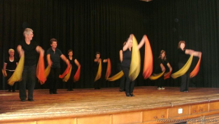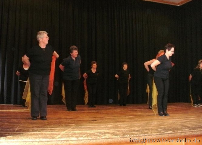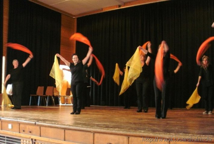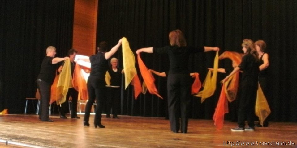 Die Frauen der Sparte Fitnessgymnastik „Sport & Spaß am Vormittag“ und vom Kurs „Aktiv und Gesund älter werden“ des TV Sersheim luden unter Anleitung ihrer Übungsleiterin Karin Geske alle Gäste ein bei einer Stuhlgymnastik auf das Lied „Wem Gott will rechte Gunst erweisen“ teilzunehmen. Dieser Einladung sind die Gäste gerne gefolgt, turnten und sangen kräftig mit. Als Vorführung hatte die Neunköpfige Gruppe eine Tüchergymnastik einstudiert.