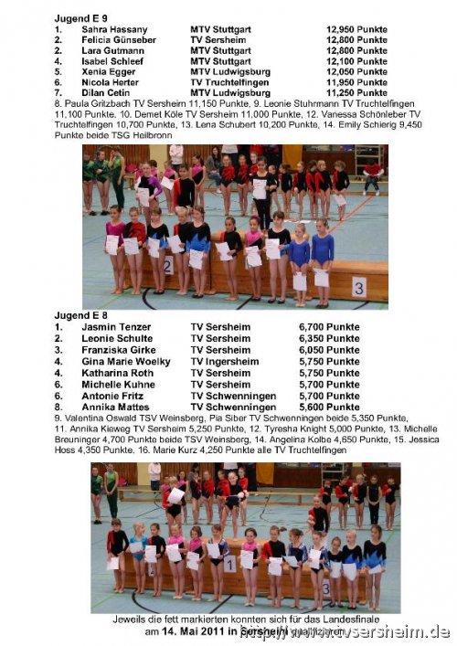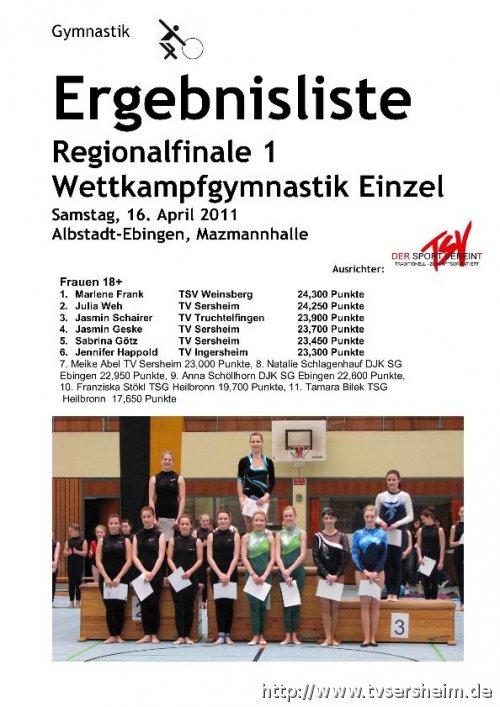 Ergebnisliste Regionalfinale 1 Wettkampfgymnastik Einzel