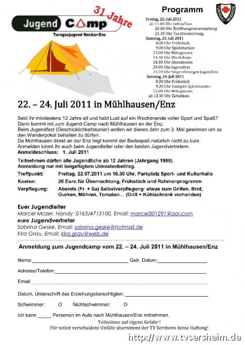 Dann kommt mit zum Jugend-Camp nach Mühlhausen an der Enz.