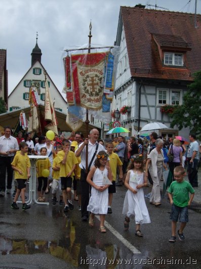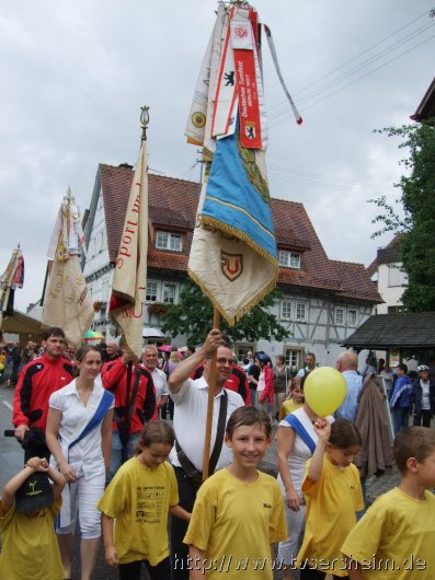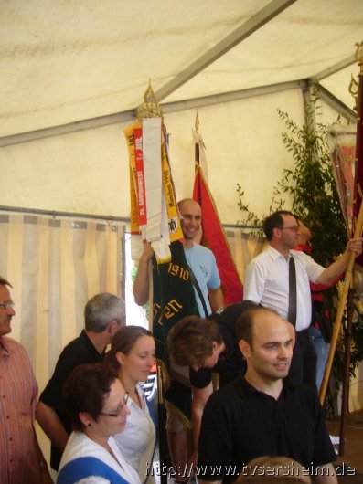 Am Sonntag, 10. Juli 2011 fand beim GSV Pleidelsheim die Fahnenweihe der 100 Jahre alten Fahne statt. Eingeladen waren benachbarte und befreundete Vereine des GSV, darunter auch der TV Sersheim. Um 16 Uhr war Treffpunkt am Stand der Turn-abteilung. Dann ging es zur Festbühne. Alle Fahnenträger nahmen ihren Platz auf der Bühne ein. Es gab ein kleines Rahmenprogramm der Turnabteilung in Form einer Aufwärmgymnastik der Fit und Fun Girls, es folgte der Jazznachwuchs und zum Abschluss präsentierten Turnerinnen ihr Können am Boden. Es folgte eine Geschichtliche Rede zur Vereinsfahne, vorgetragen von Sabine Leibfritz. Die Fahne wurde am Sonntag, den 9. Juli 1911 feierlich geweiht und ist seither der ganze Stolz des GSV. Diese lange Zeit ging nicht spurlos an ihr vorüber, deshalb wurde der Fahne Anfang des Jahres eine Wellness-Kur gegönnt. Sie wurde aufwendig restauriert und strahlt jetzt wieder in neuem Glanz.