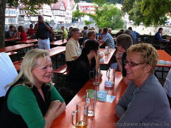 Um 18.00 traf sich die gesamte Gruppe im Biergarten am Kocher, wo wir im Schatten verweilen und uns stärken konnten für das kulturelle Highlight am Abend.