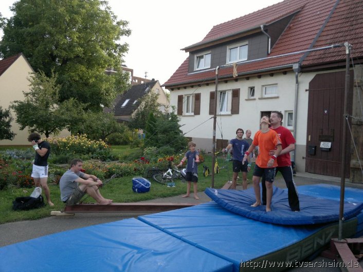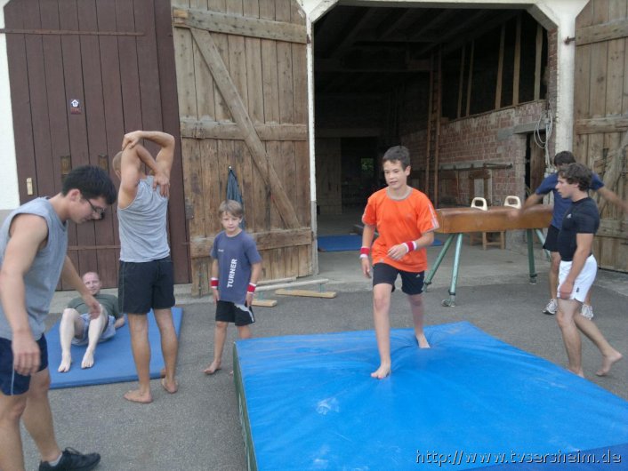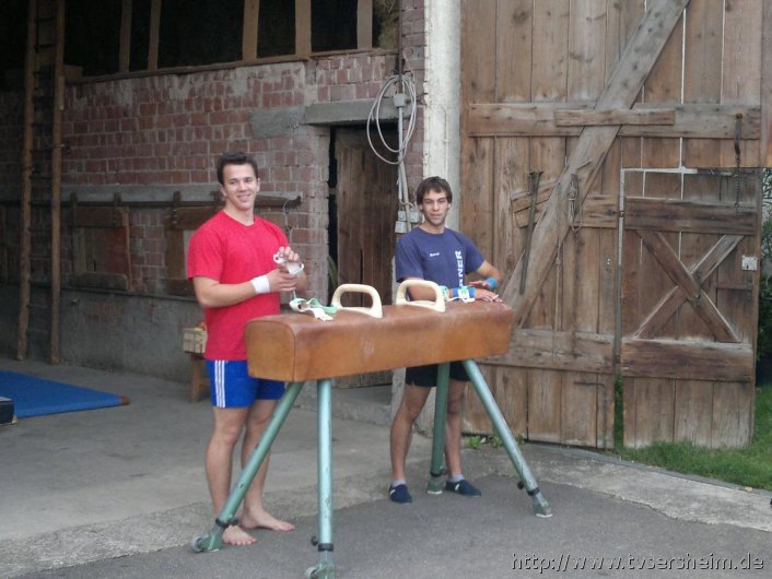 Donnerstags wird in Sersheim, im Hof von Familie Mozer, Barren und Pauschenpferd trainiert. Ob Handstandschwingen unter freiem Himmel oder Kreisflanken im Wind, beim Freilufttraining in Ingersheim und Sersheim macht jeder neue Erfahrungen, welche mit großer Hoffnung mit in die nächste Bezirksligarunde genommen werden.
