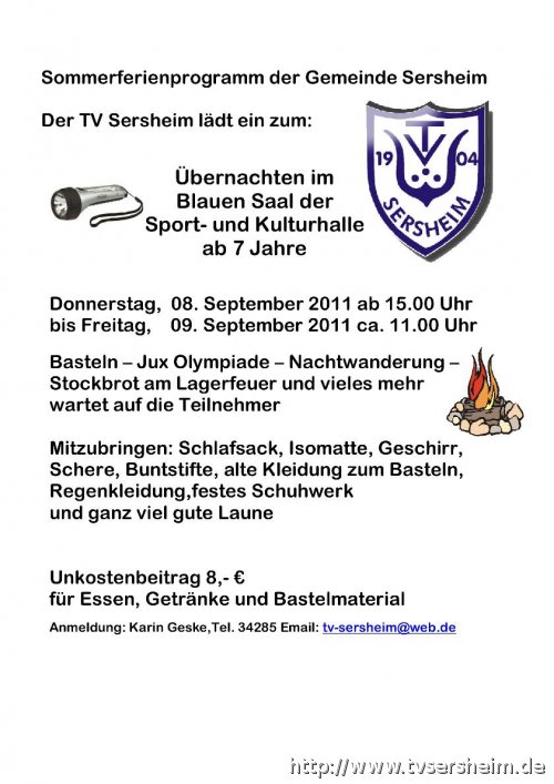 Anmeldung: Karin Geske,Tel. 34285 Email: tv-sersheim@web.de