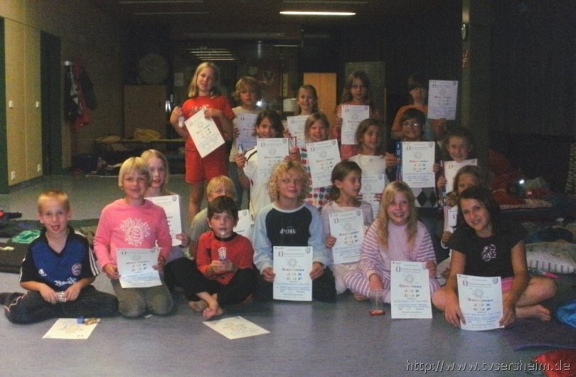 Von Donnerstag, 08. September – Freitag, 09. September 2011 hatte der TV Sersheim Kinder ab 7 Jahre eingeladen zur Übernachtung im Blauen Saal. Seit vielen Jahren gehört die Übernachtung zum festen Bestandteil des Sommerferienprogramms der Gemeinde Sersheim.