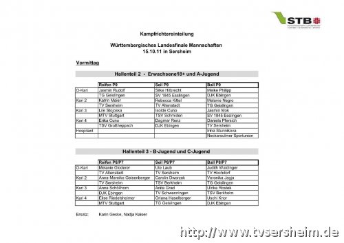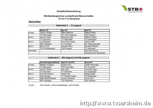 Diese kommen vom TV Altenstadt, TSV Berkheim, TSV Ebingen, SV Esslingen, TV Hochdorf, TG Geislingen, TV Großheppach, TSV Schmiden, MTV Suttgart, TV Truchtelfingen, TSV Weinsberg und vom Gastgeber dem TV Sersheim.