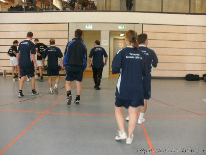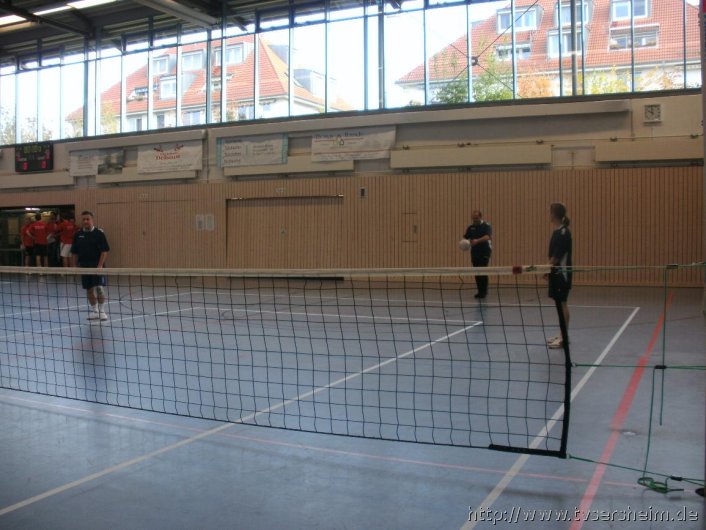Hallenöffnung war um 9 Uhr, die ersten Spiele starteten um 9.30 Uhr. Es wurde auf drei Spielfeldern gespielt. Im ersten Spiel musste das Team Sersheim 2 mit Sabrina Geske, Marvin Wamsler und Calogero Marotta gegen MTG Stars antreten. Das Spiel endete 16 : 10. Die Mannschaft 2 (Sieghard Geske, Bernhard Sauer, Heike und Roland Bachert) spielte gegen Engelhard 98/02 und verlor leider mit 14 : 18 Punkten.