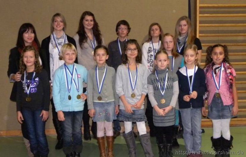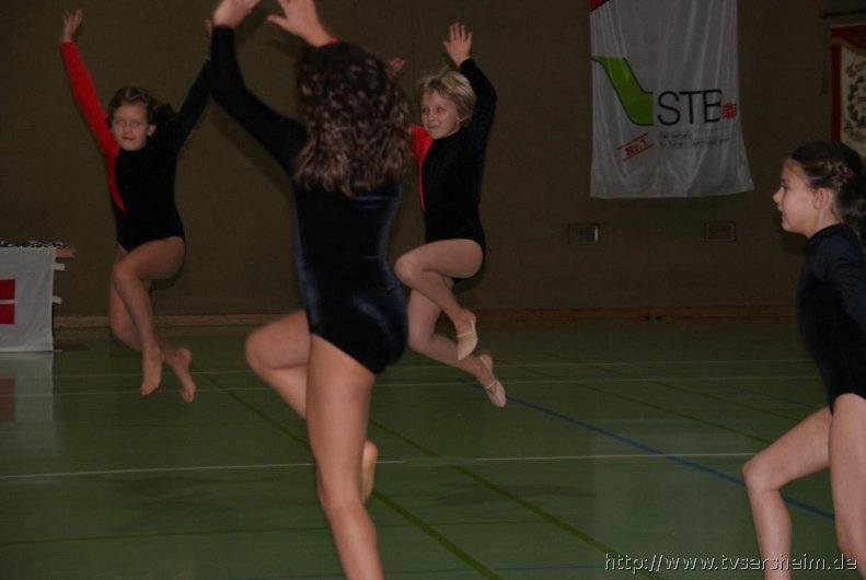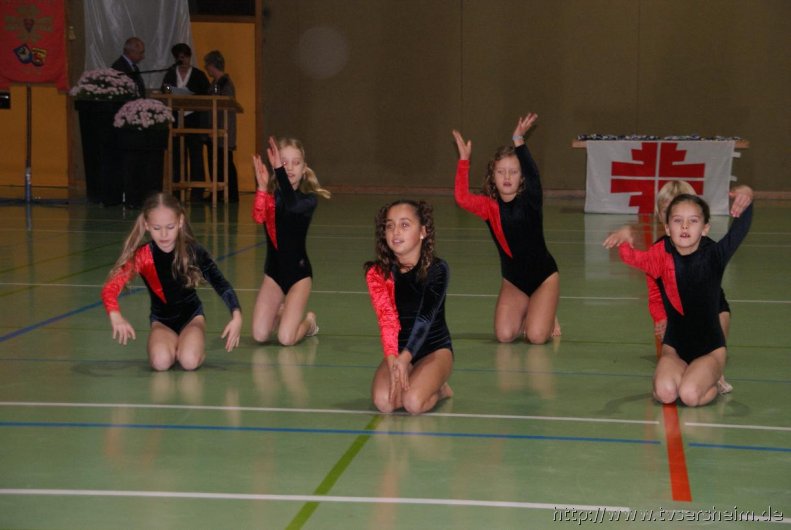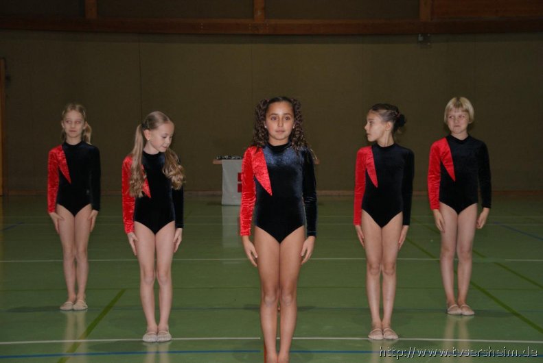 Geehrt wurden: Jasmin Tenzer, Michelle Kuhne, Franziska Girke, Demet Köle,Felicia Günseber, Jessica Lutsch, Silvana Lang, Mandy Krauth, Jasmin Geske, Julia Weh und Jenny Asprion. Für ihre Erfolge als Gaumeister sowie ihre Landessiegertitel erhielten Sie die Bronzene Gaumedaille vom Turngau Neckar-Enz. Beim nächsten Programmpunkt gab es eine Einlage der Tanz- und Akrobatikgruppe des TSV Knittlingen. Just P hieß es als die Gruppe des GSV Pleidelsheim als Marionetten auf die Bühne kamen.