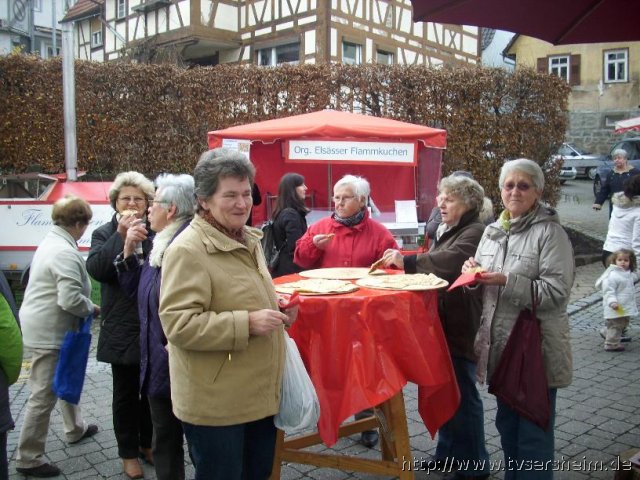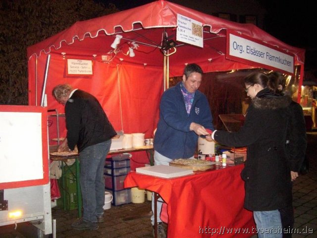 Der TV Sersheim beteiligte sich beim diesjährigen Krämermarkt am Samstag, 20. November 2010. Vorstand Ralf Gänzle und Karin Geske ließen es sich nicht nehmen selbst an die Kasse zu stehen und verkauften frischen Elsässischen Flammkuchen und plauderten mit den Gästen. Willi Schmid und seine Frau Yvonne belegten die Flammkuchen nach Wunsch der Gäste mit Zwiebel, Speck und Käse, anschließend wurde er im eigenen Holzofen gebacken. Zahlreichen Mitglieder und Gäste genossen die Flammkuchen in der Weihnachtlichen Atmosphäre des Krämermarktes.