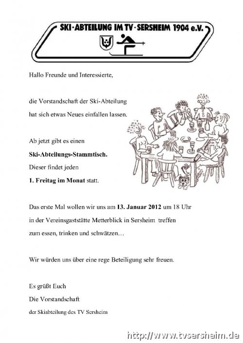 Die Premiere des Ski-Abteilungs-Stammtisch findet für alle Intressenten am 13. Dezember 2011 statt.