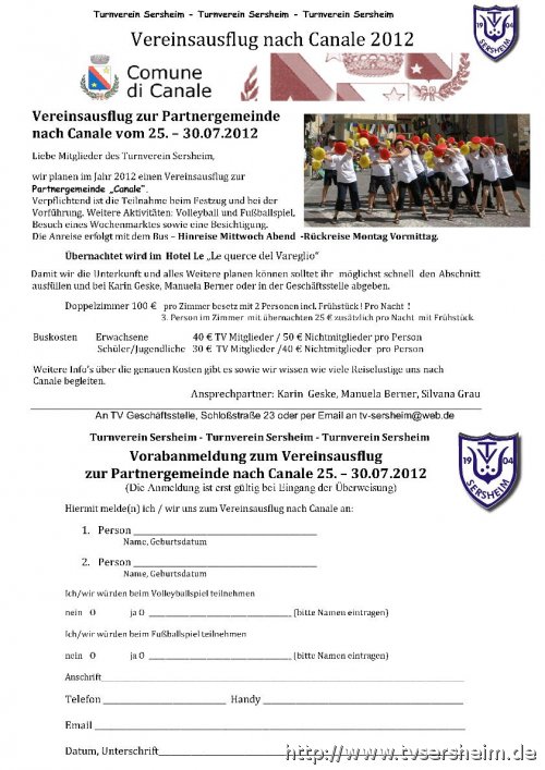 wir planen im Jahr 2012 einen Vereinsausflug zur Partnergemeinde nach „Canale“.