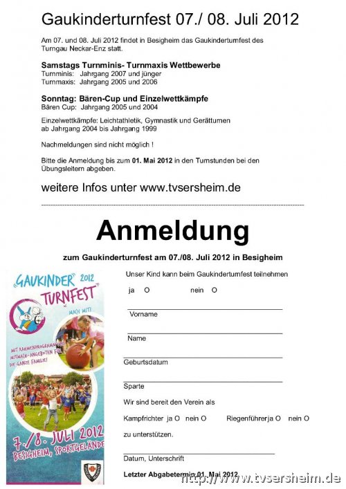 Bitte die Anmeldung bis zum 01. Mai 2012 in den Turnstunden bei den Übungsleitern abgeben.
